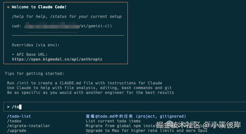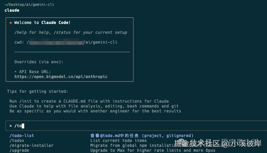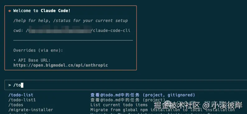 进入其它工作区,启动Claude Code CLI,输入 /todo-list 可以看到定义的全局自定义命令