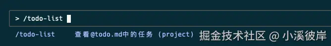 重启Claude Code CLI,使用 /todo-list 调用自定义命令