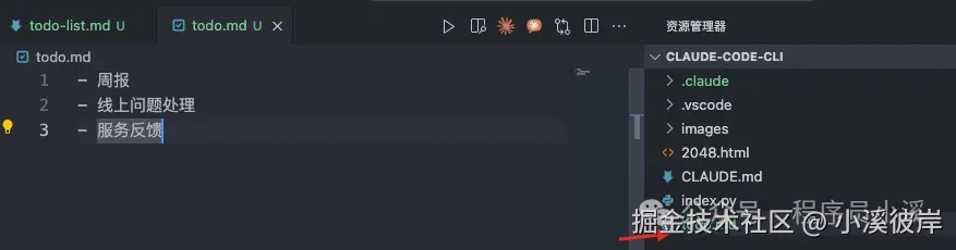 在项目根目录创建 todo.md 文件,随便写点任务列表