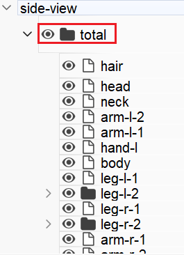 - 为整体做一个文件夹,我这里取名为 total (右键可创建文件夹,将所有图层拖进去)