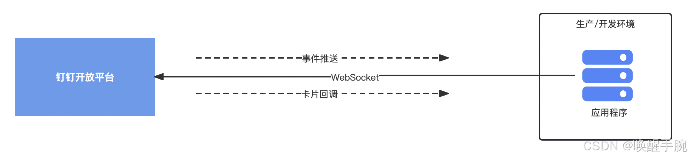 Stream 模式是钉钉开放平台提供的一种集成方式,它可以监听机器人回调、事件订阅回调和注册卡片回调。使用 Stream 模式接入,钉钉开放平台将通过 Websocket 连接与应用程序通讯,Stream 模式将极大降低接入门槛和资源依赖,不需要公网服务器、IP、域名等资源,只需集成钉钉开放平台 SDK 即可。