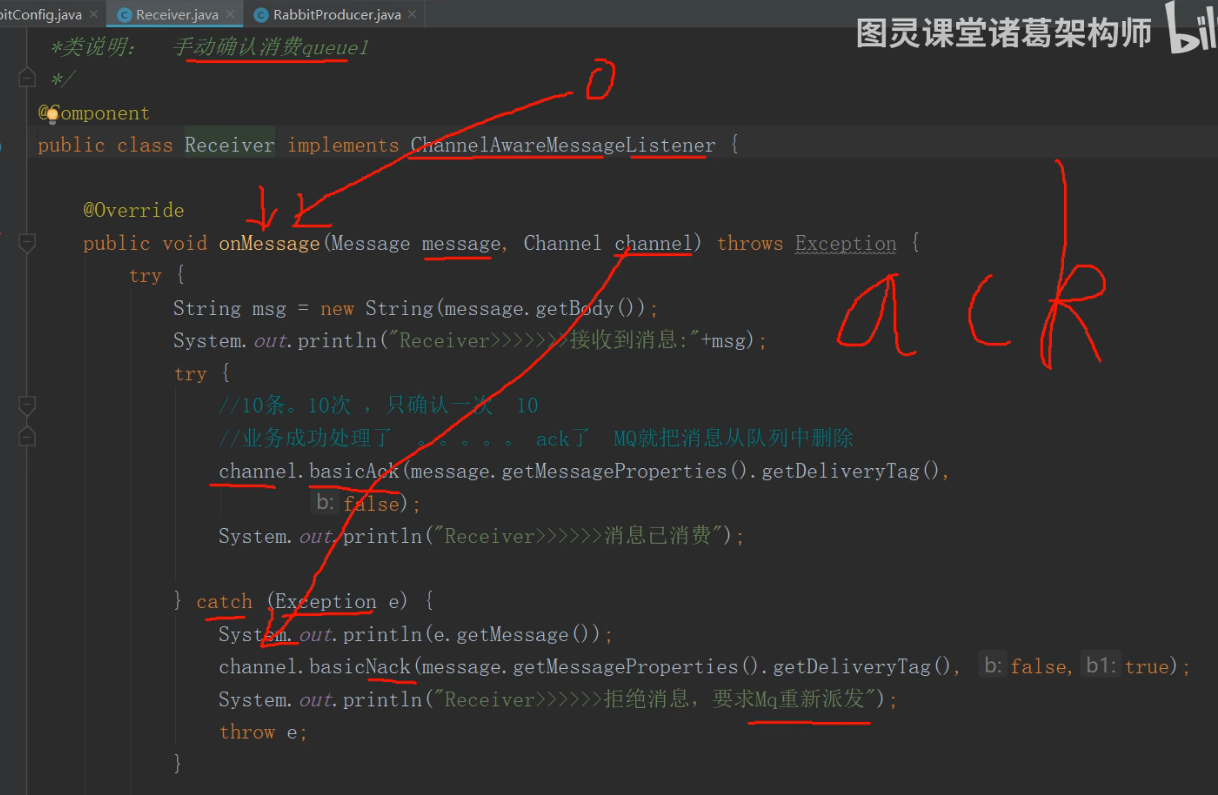 3.4确保消息从队列中正确投递到消费者:手动确认->交给消费者确认