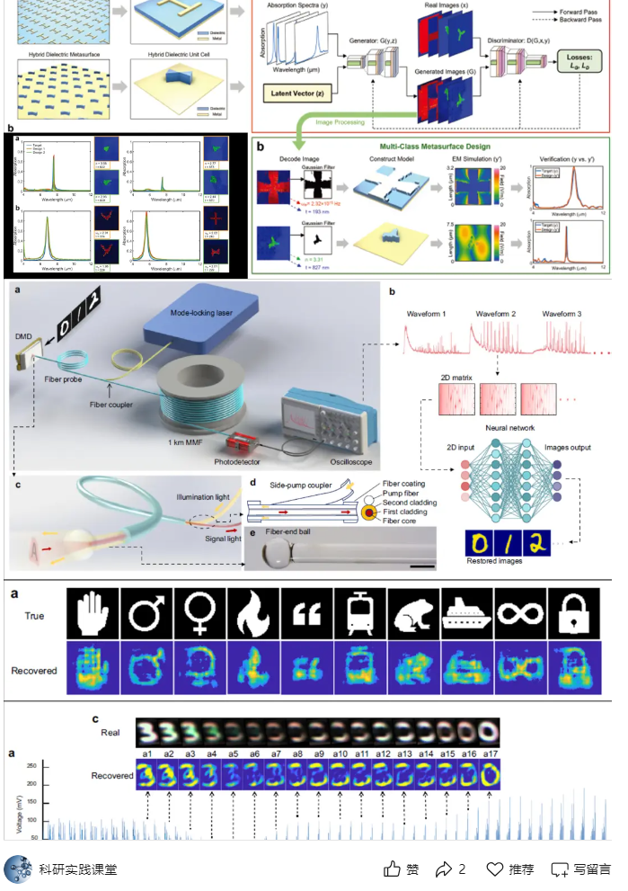 逆向设计:利用深度学习模型如生成对抗网络(GAN)或变分自编码器(VAE)生成满足特定光学特性的光子结构。例如,纳米光子器件的拓扑优化可以通过神经网络实现,比传统迭代方法快几个数量级。