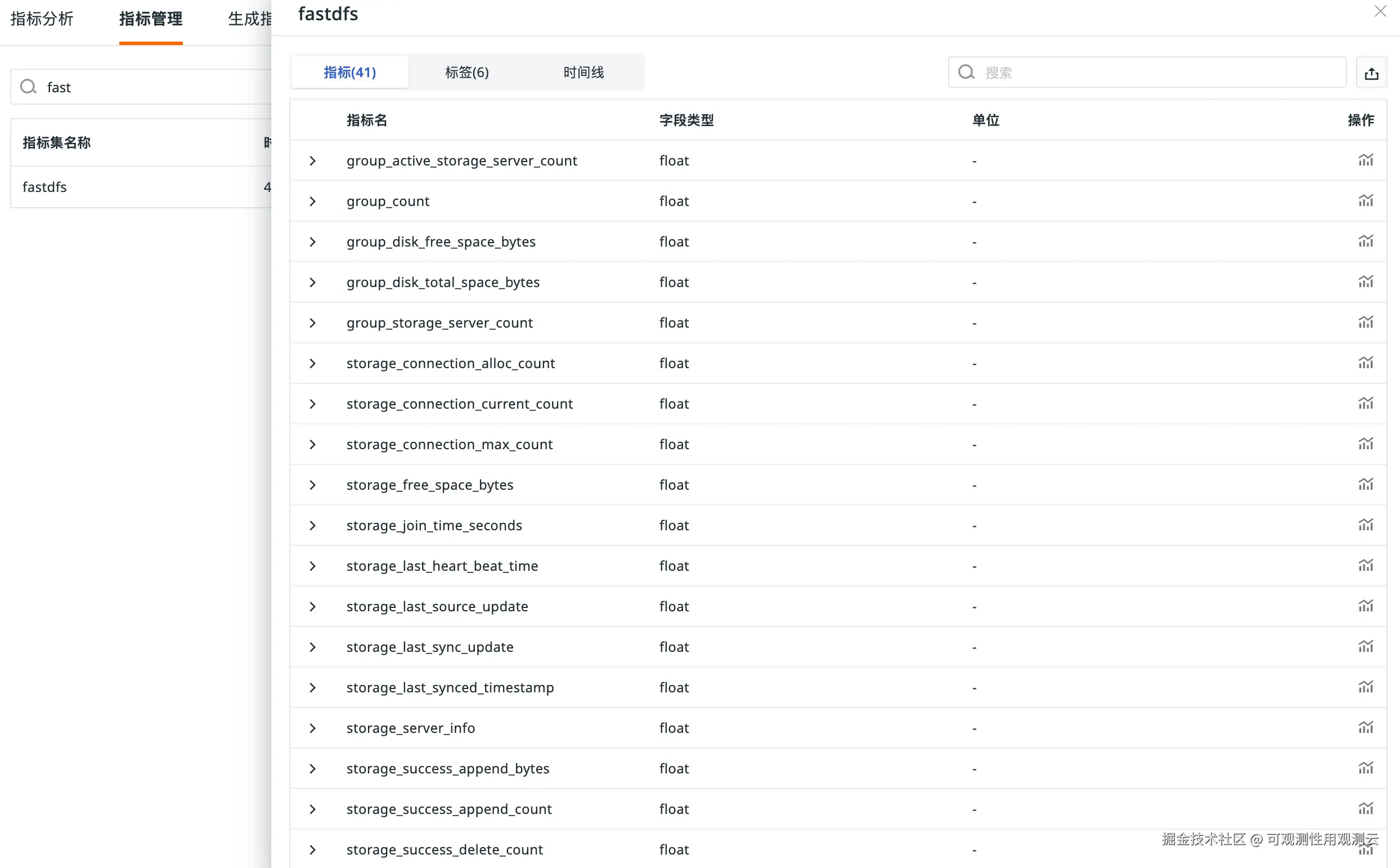 收集的指标是基于FastDFS内置的`fdfs_monitor`命令