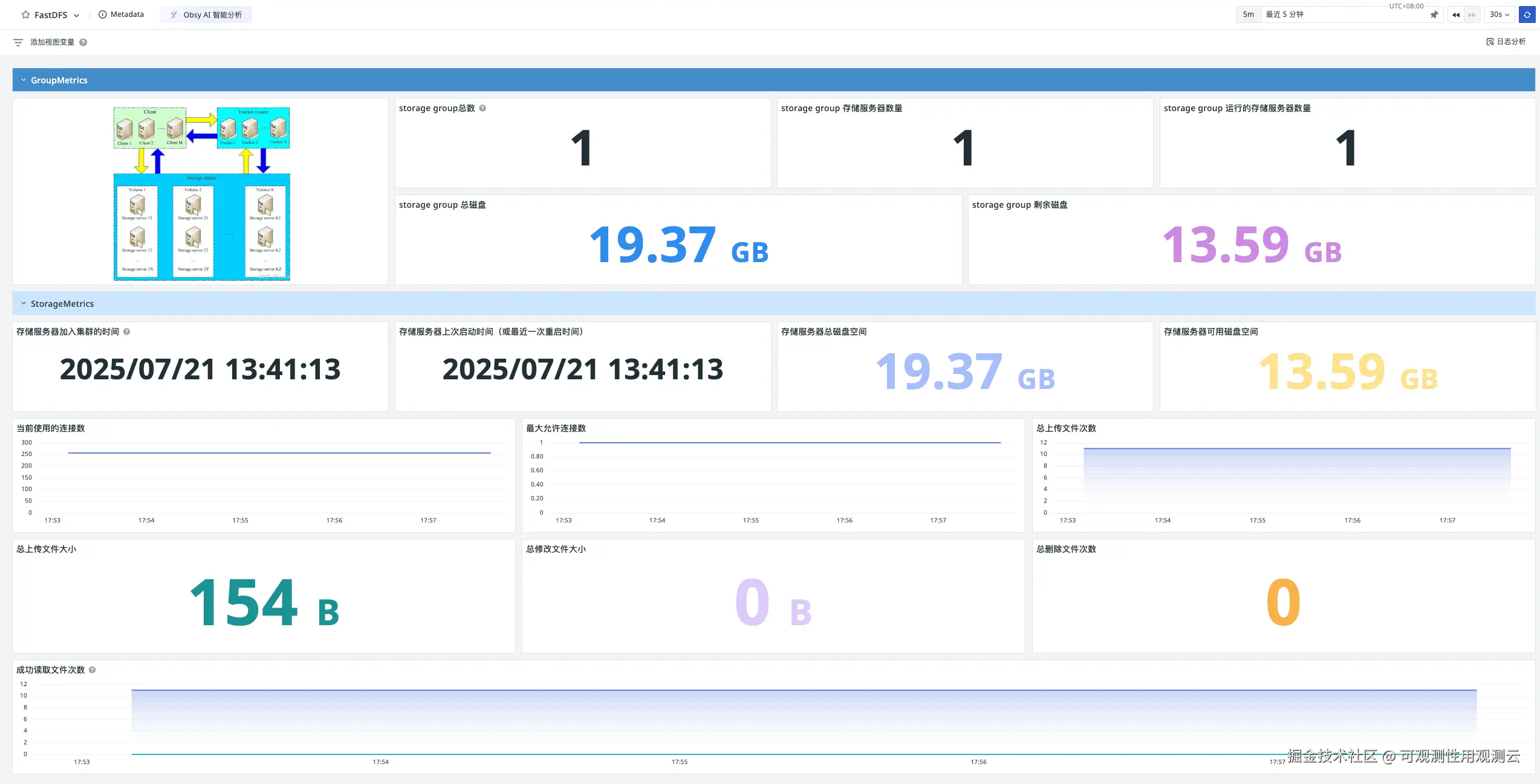 FastDFS 监控系统通过实时状态感知、智能告警与数据可视化,将故障响应从小时级压缩至分钟级,接入观测云后监控后,运维效率提升 50% 以上,故障响应从小时级降至分钟级,资源利用率提升 30%,业务中断风险降低 90%。对于高并发文件服务(如电商图片、视频平台),让监控不仅是"保险绳",更是性能优化和成本控制的决策引擎 。