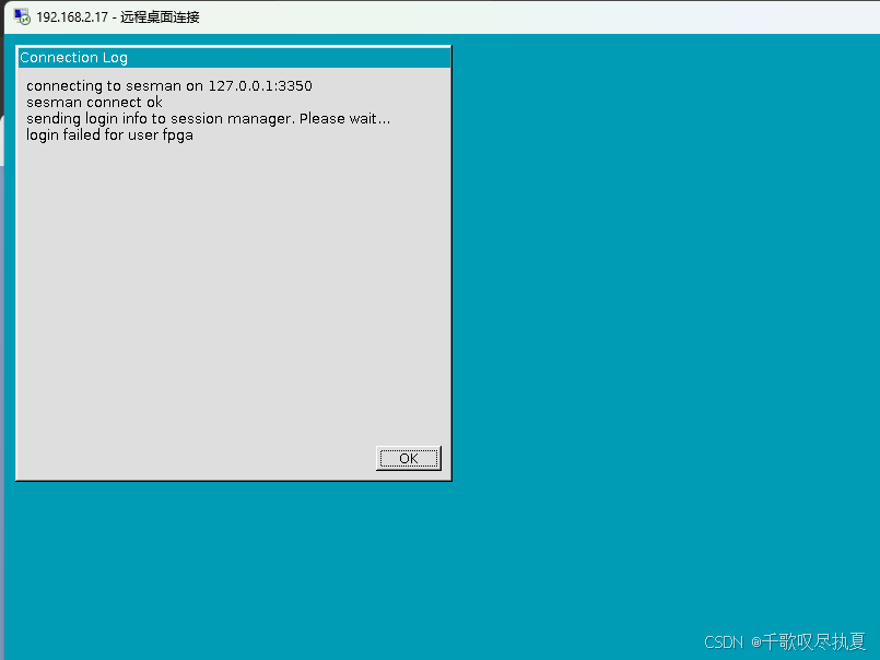 connecting to sesman on 127.0.0.1:3350sesman connect oksending login info to session manager, Please wait...login failed for user fpga
