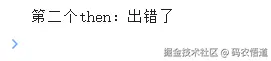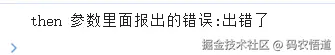 有很多初学者可能会回答什么都不输出,或者说报错,他们的想法是executor 里面执行的reject ,而第一个then里面里面又没有第二个参数进行处理,所以不会输出任何东西,但现实不是这样的,Promise在处理错误时具有穿透性,第一个then 没有处理时,会到下一个then 进行处理,如果所有的then都没有第二个参数,且没有catch 才会报错。
