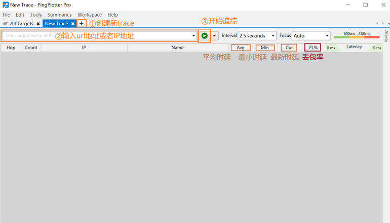 - [3.3.2 PingPlotter 界面介绍](#3.3.2 PingPlotter 界面介绍)