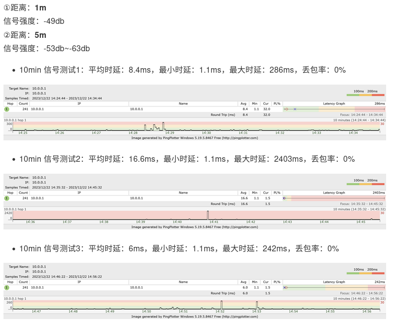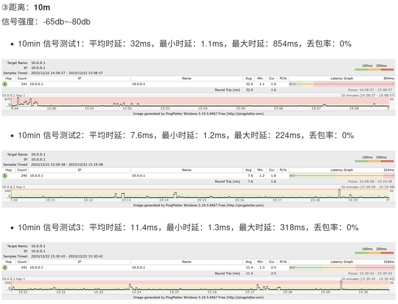 10m信号强度(db) | -69~-76 | -65~-80 | -65~-70 |
