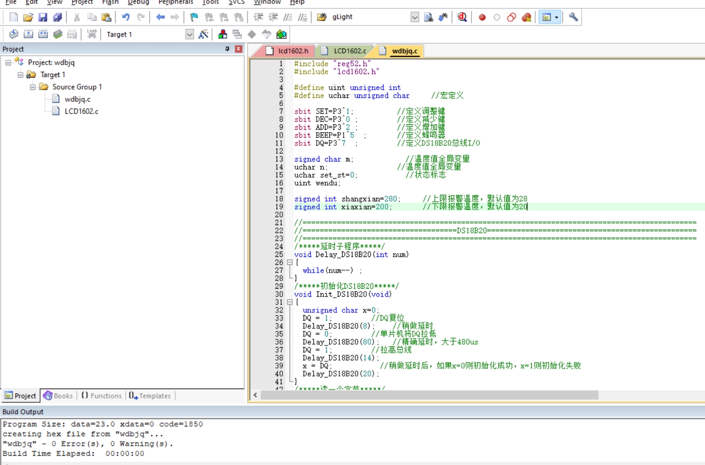 1、LCD1602液晶显示温度值