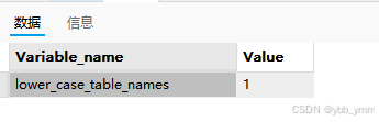 1 | 不区分大小写,所有表名保存为小写 | Windows 推荐,跨平台推荐 |