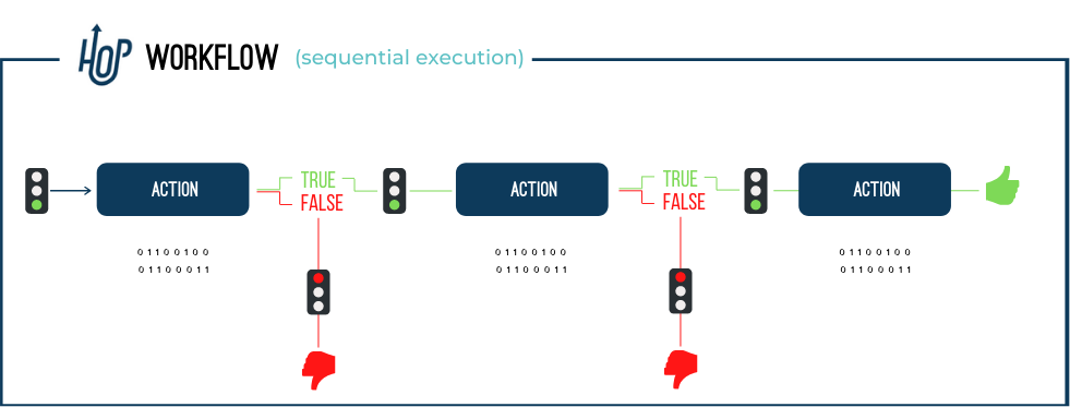 在工作流中,Hops 根据前一个动作的退出状态进行操作;