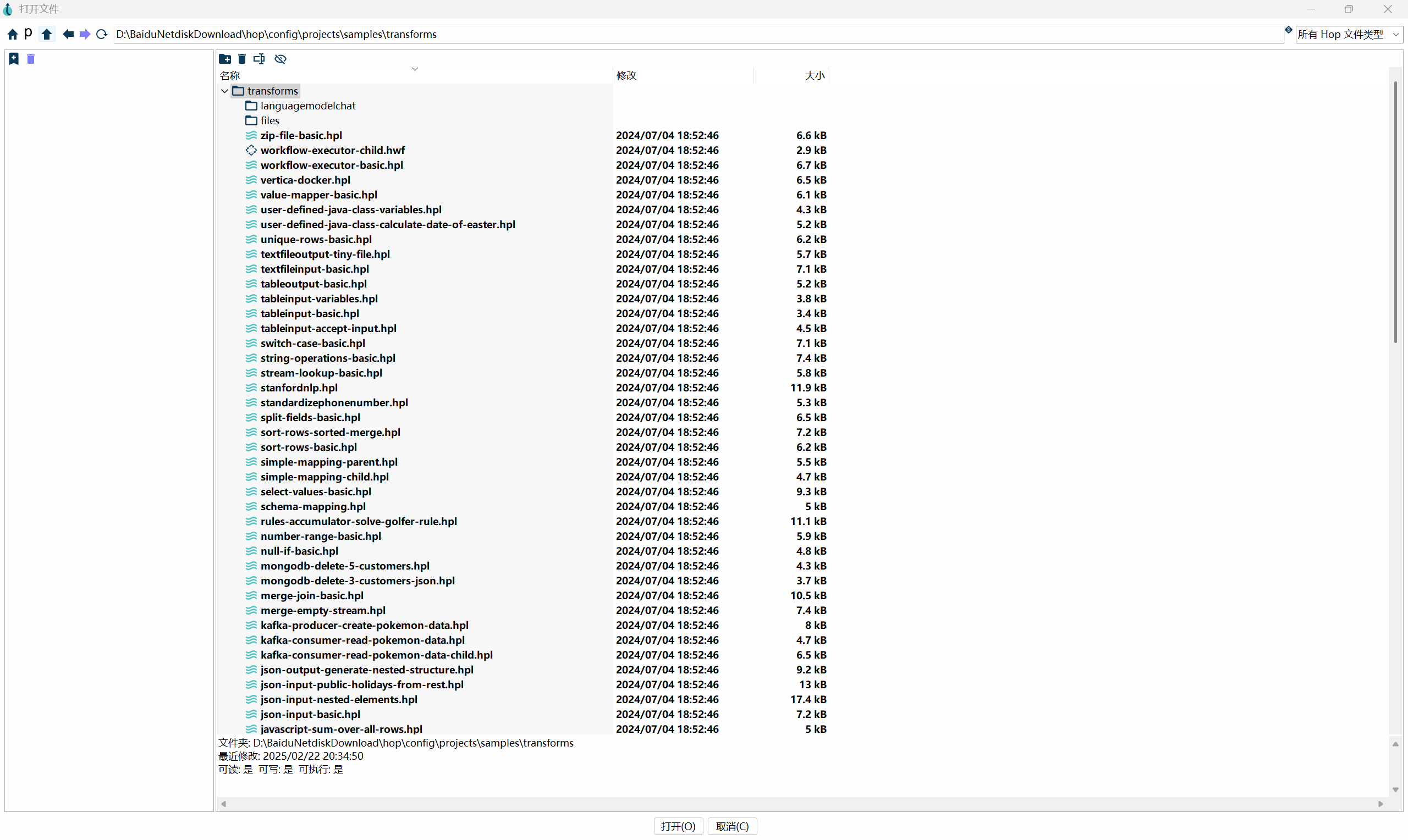 Apache Hop 自带了大量的学习案例,位于安装目录下的 config\projects\samples