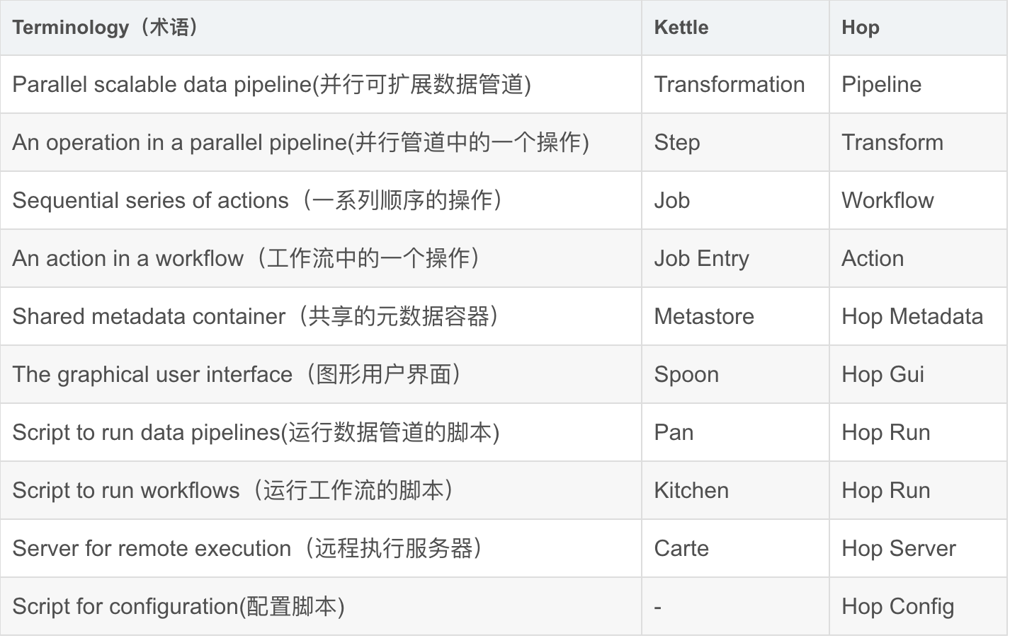 hop官方对比原文https://hop.apache.org/tech-manual/latest/hop-vs-kettle/index.html
