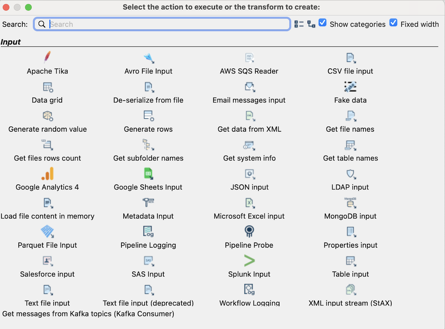 用途:从 MongoDB 读取文档数据。 - LDAP input / Splunk Input / SAS Input