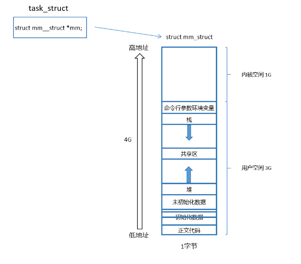 创建一个进程,先有 task_struct,mm_struct 等,再加载代码和数据。