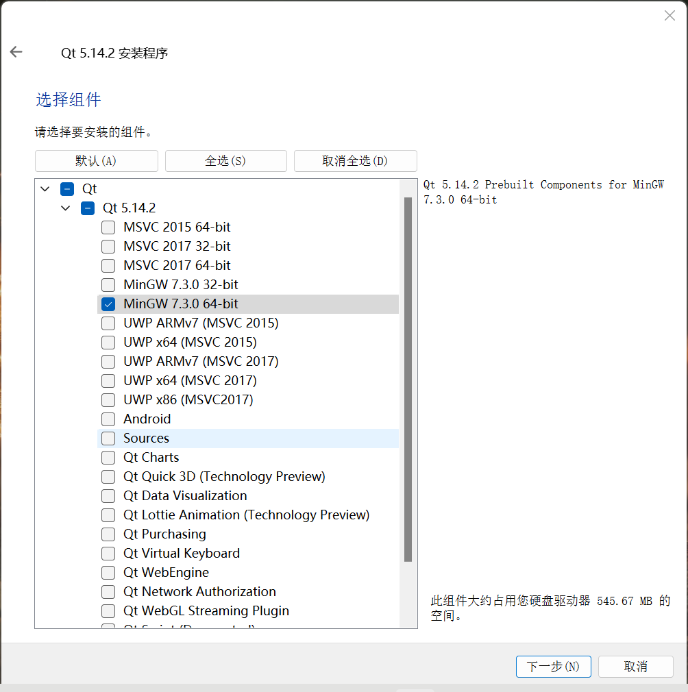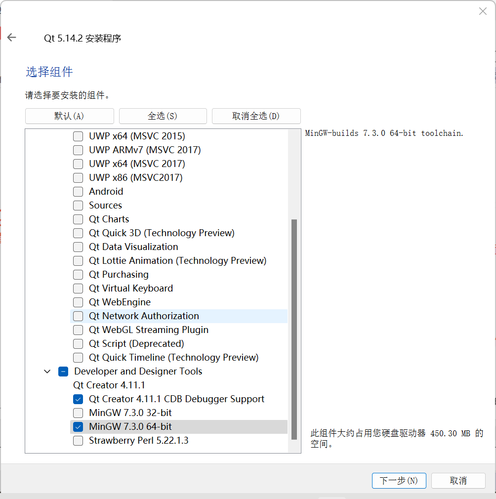 3、选择安装组件;这里我们安装的是 Qt Creator