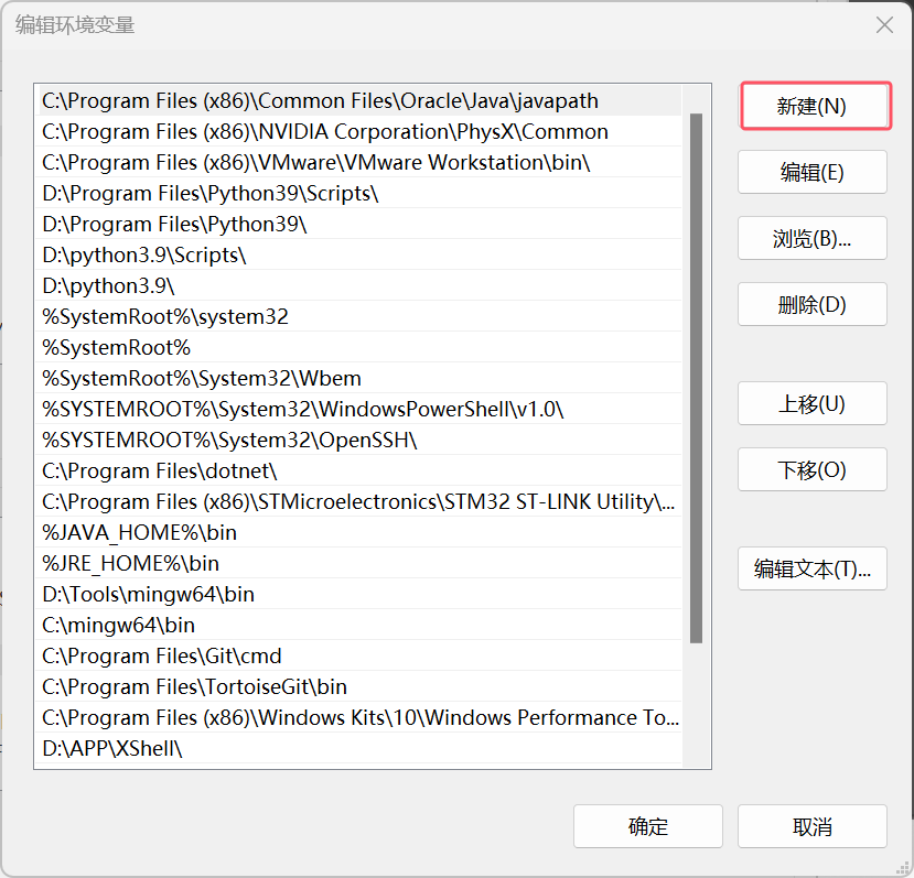 点击后在系统环境变量里面找到Path,双击,然后点击新建