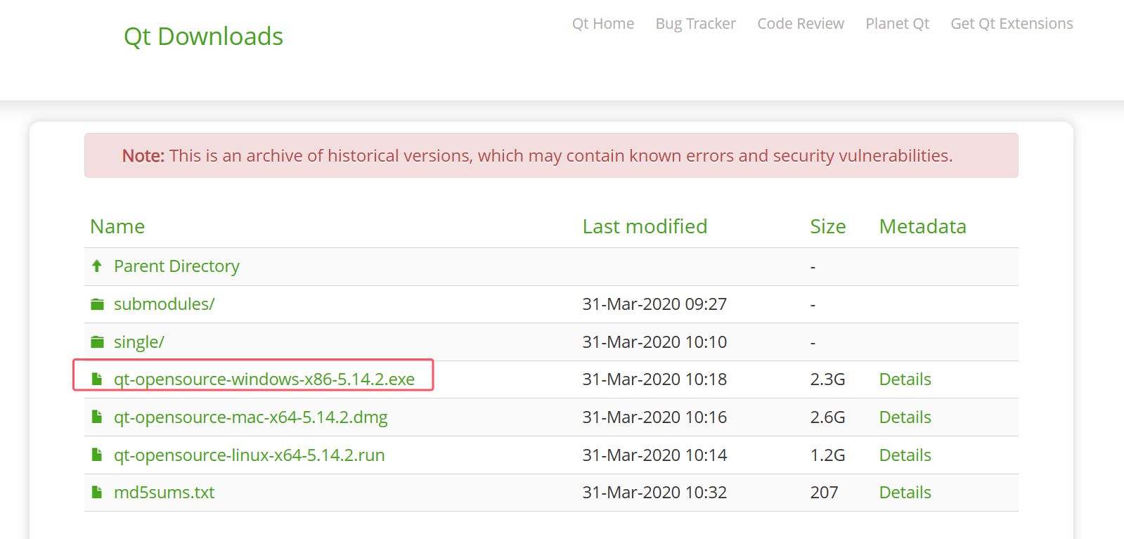 Qt 下载官网:http://download.qt.io/archive/qt/