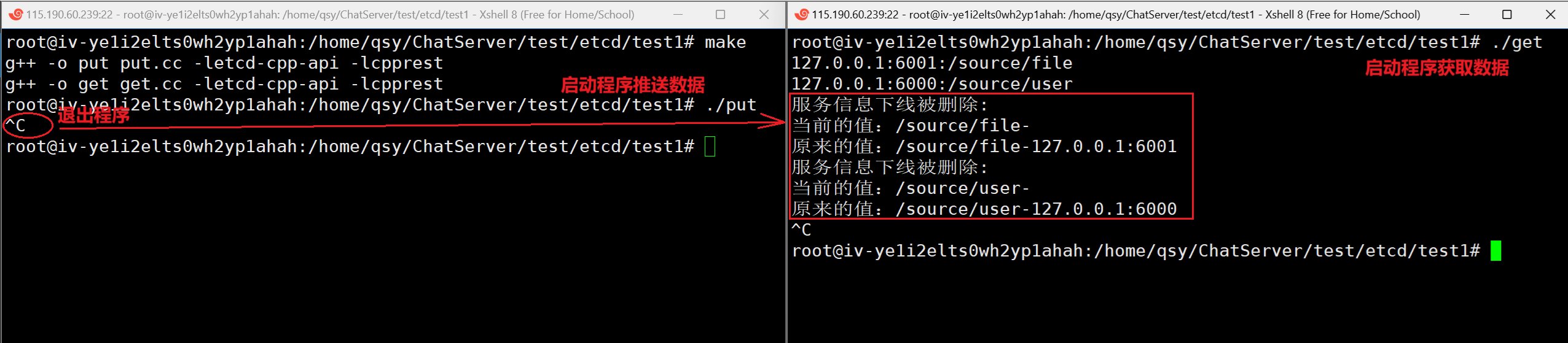std::cout << "下线服务:" << ev.kv().key() << "-" << ev.kv().as_string() << std::endl;