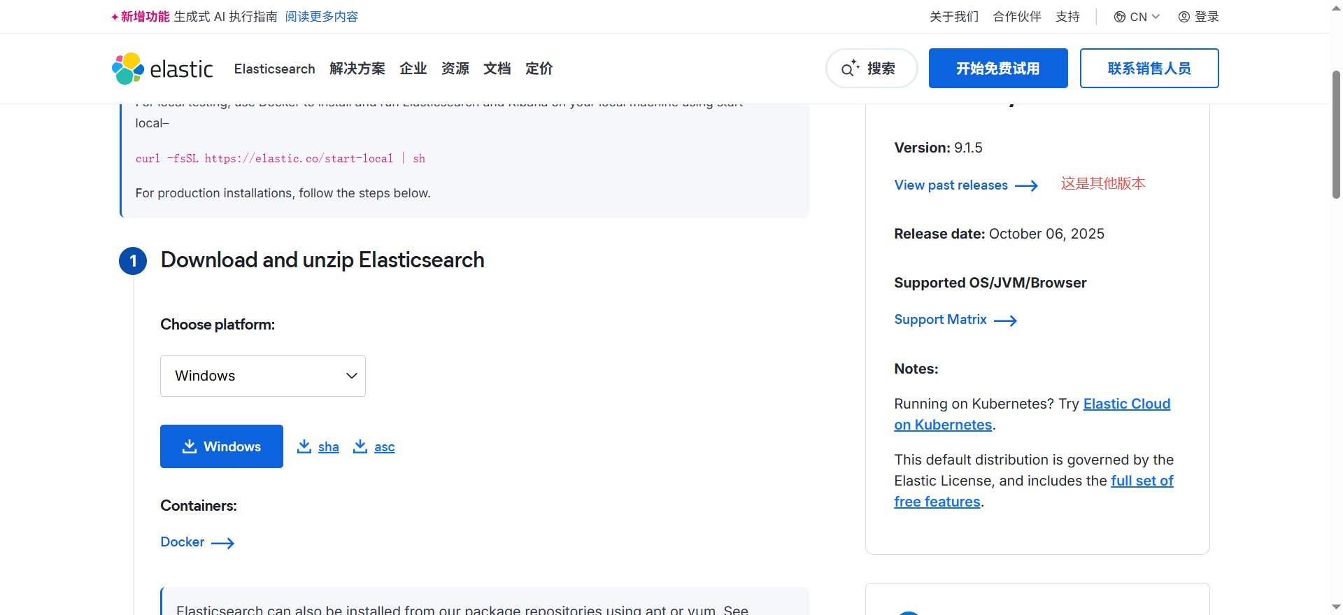 下载地址:https://www.elastic.co/cn/downloads/elasticsearch