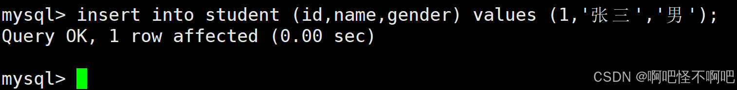 在values前面是我们要在这张表中给那些地方插入,在values后面是我们要在这些位置插入什么。