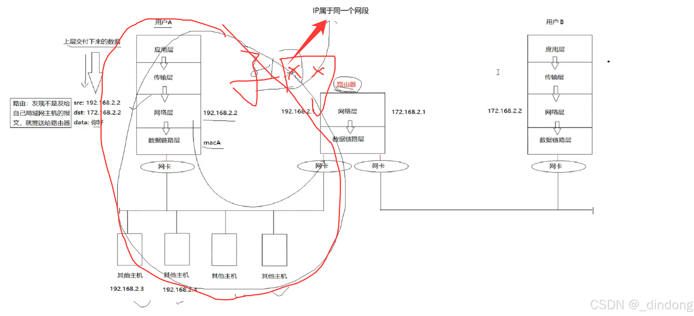 - 网关转发:若跨网→封装网关MAC(通过ARP获取)而非目标主机MAC