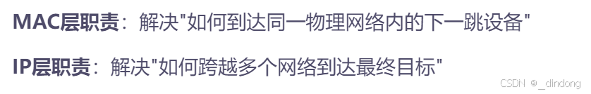 - 本质:MAC只解决"当前物理网络下一跳"问题,IP负责端到端路由
