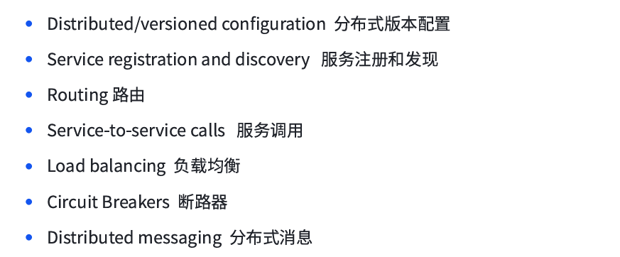 Spring Cloud 提供了一些可以让开发人员快速构建分布式服务的工具,比如:配置管理,服务发现,熔断,智能路由等等。