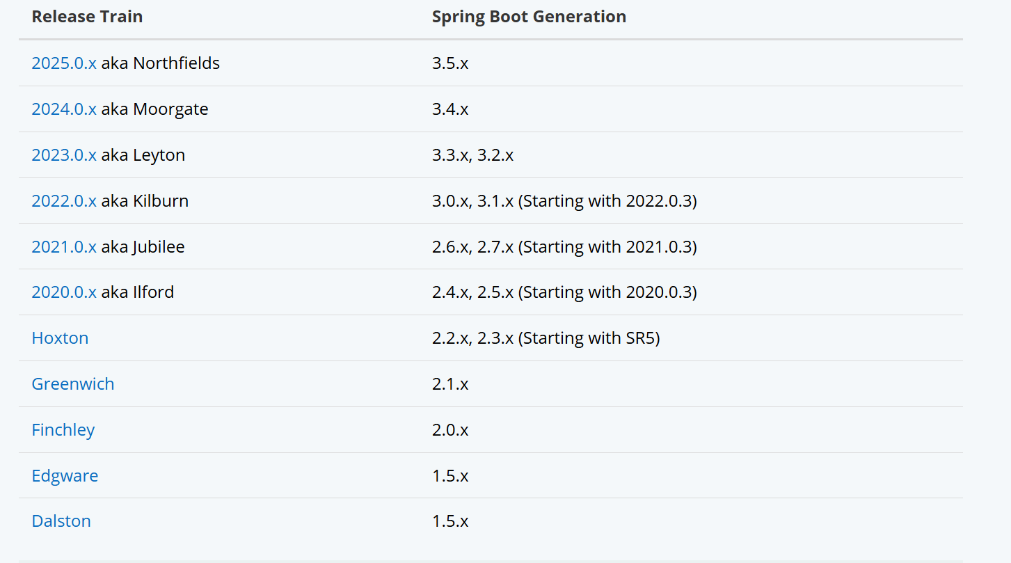 Spring Cloud 中所有的子项目都依赖 SpringBoot,Spring Cloud 和 Spring Boot 之间的版本也有一定的对应关系。