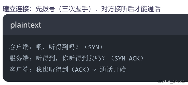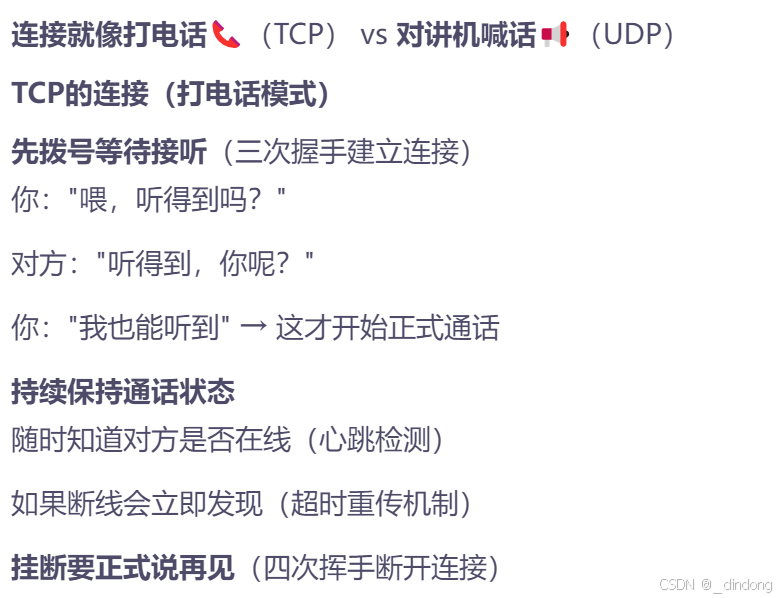 这里的连接其实就是我们之后要谈到的"握手",有连接就像是两个人打电话都喜欢先"喂"一句,这是为了确保连接上了才能进行通信。