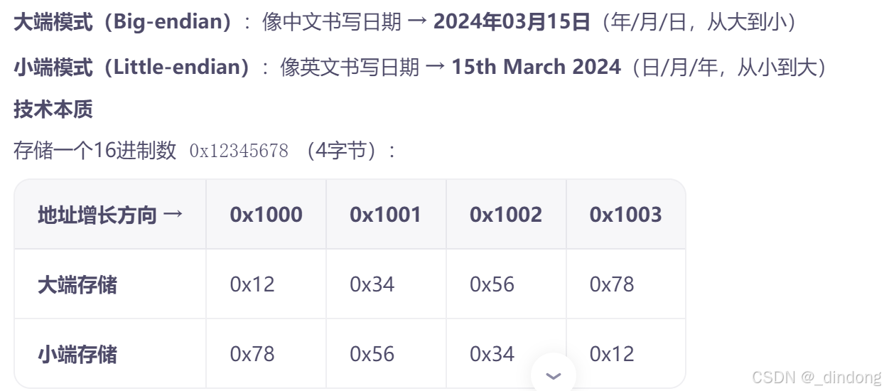 • 因此,⽹络数据流的地址应这样规定: 先发出的数据是低地址,后发出的数据是⾼地址.
