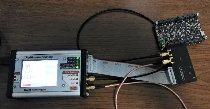 图 8、通过专用扩展板与 ChipWhisperer Pro 连接的 RAMN 平台实物图
