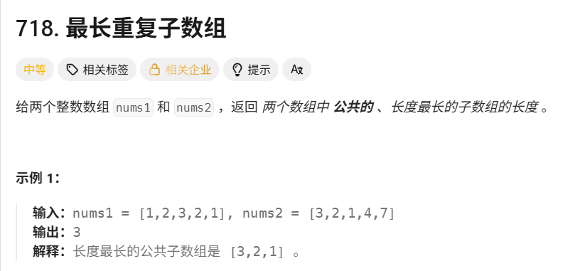 它们的最长公共子数组 (题目里的"重复子数组")是