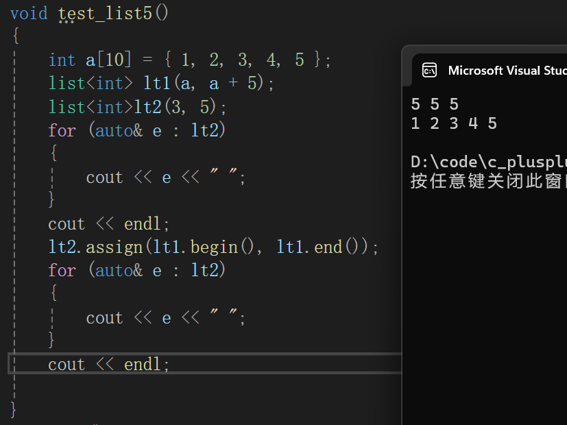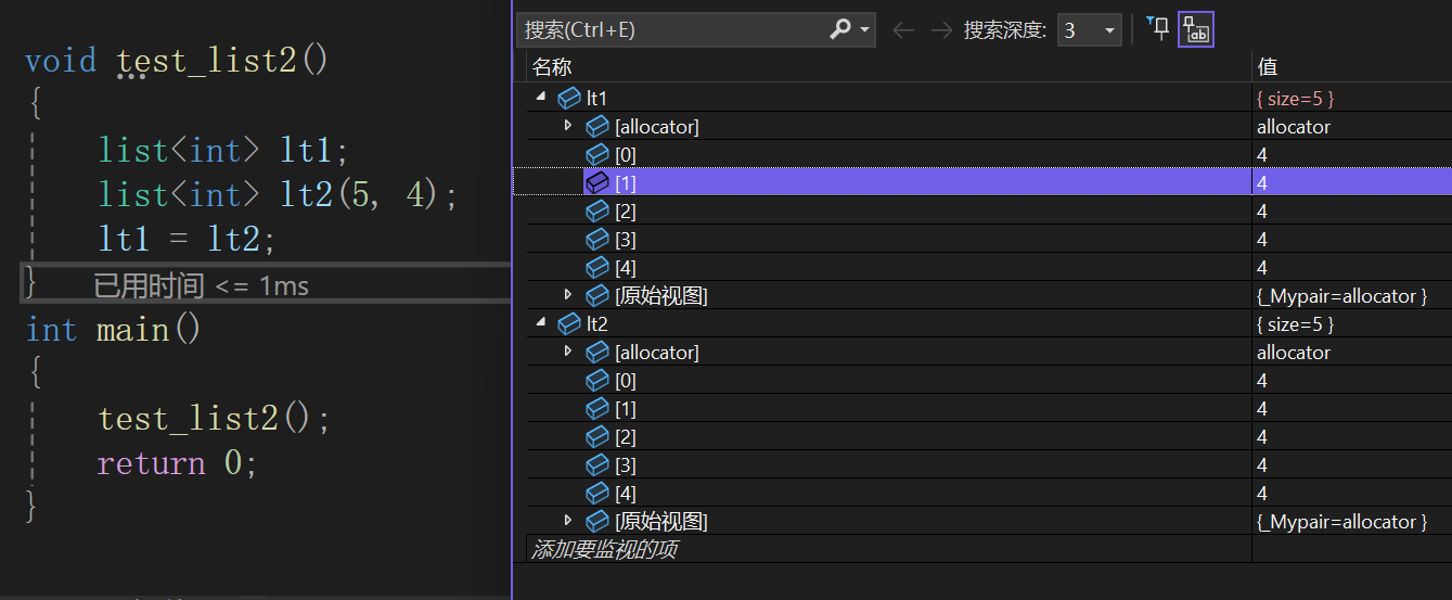 - 注意使用赋值运算符时,list对象已经创建,否则就会调用拷贝构造函数
