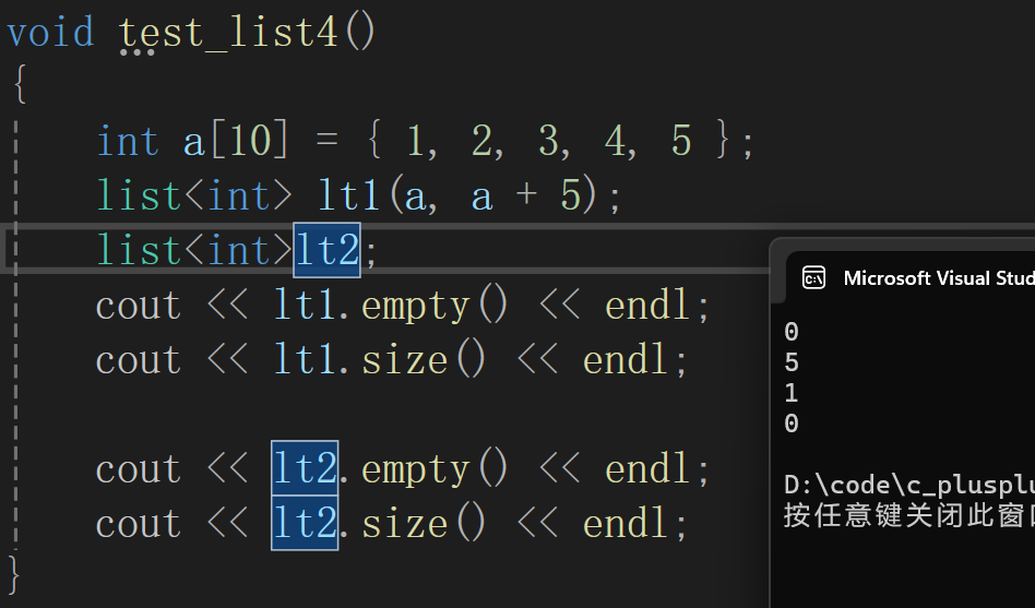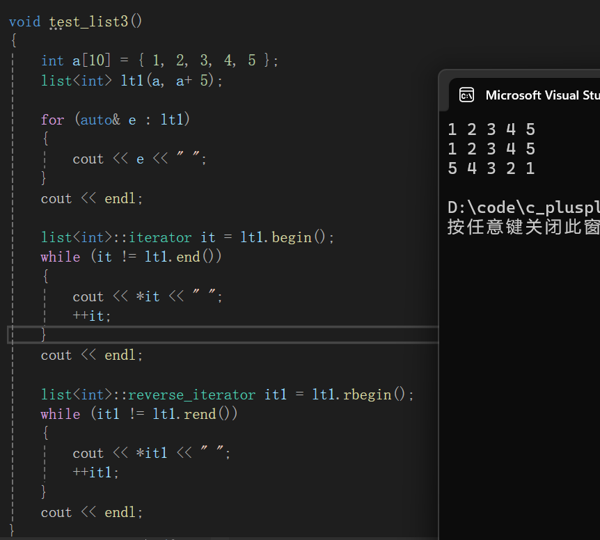 - 构造函数还可以使用迭代器进行初始化,迭代器可以是list类型也可以是其他类型