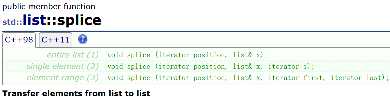 - 将一个list对象x的某个迭代器区间的节点链接到pos位置