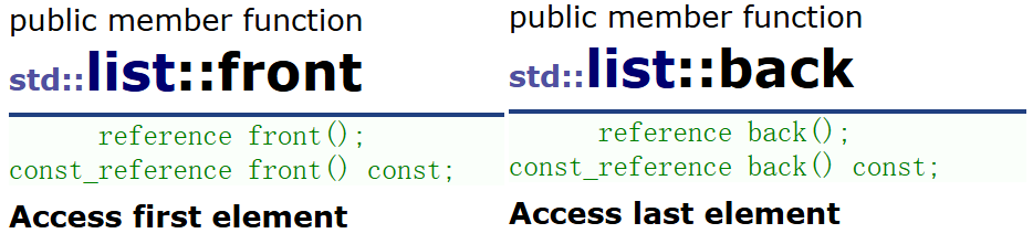 front/back返回list第一个位置/最后一个位置数据的引用,可以访问和修改