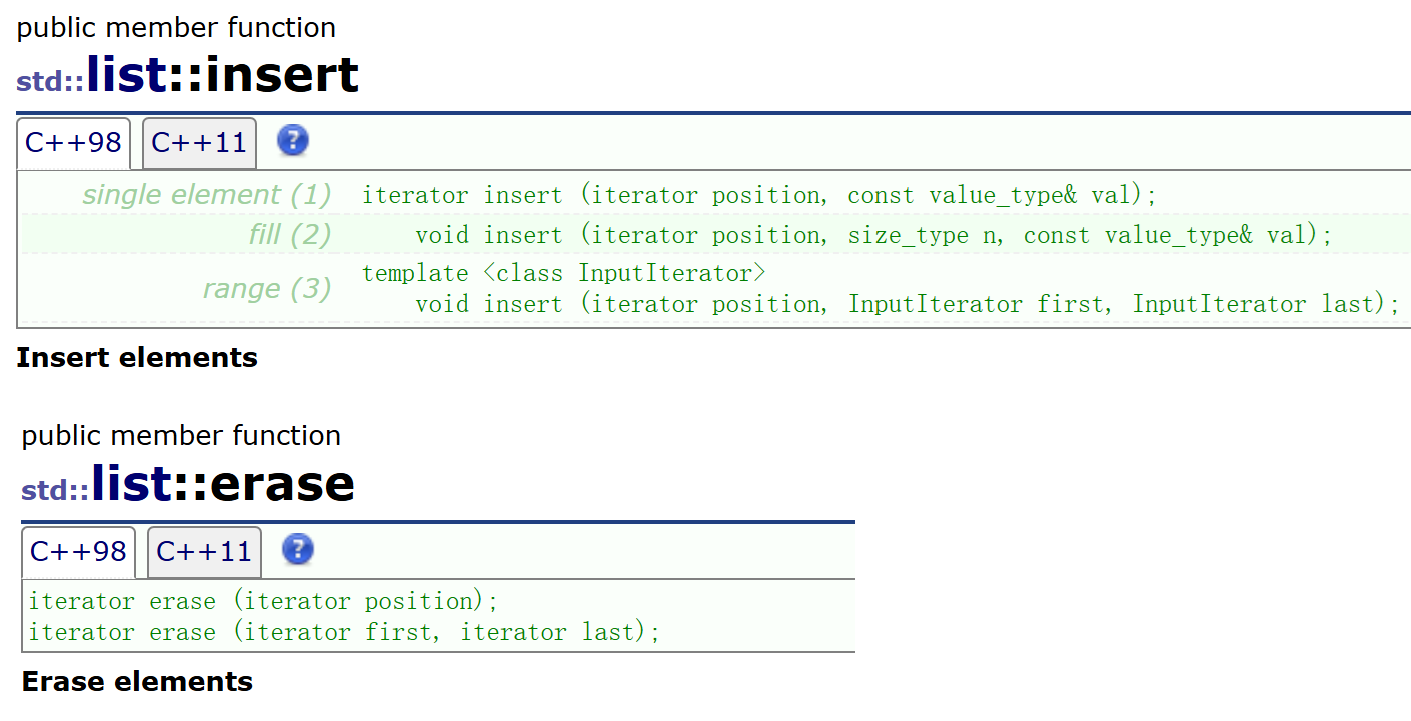 - insert再迭代器位置插入一个值,并返回插入元素的迭代器;insert在迭代器位置插入n个值;insert在迭代器位置插入一段迭代区间