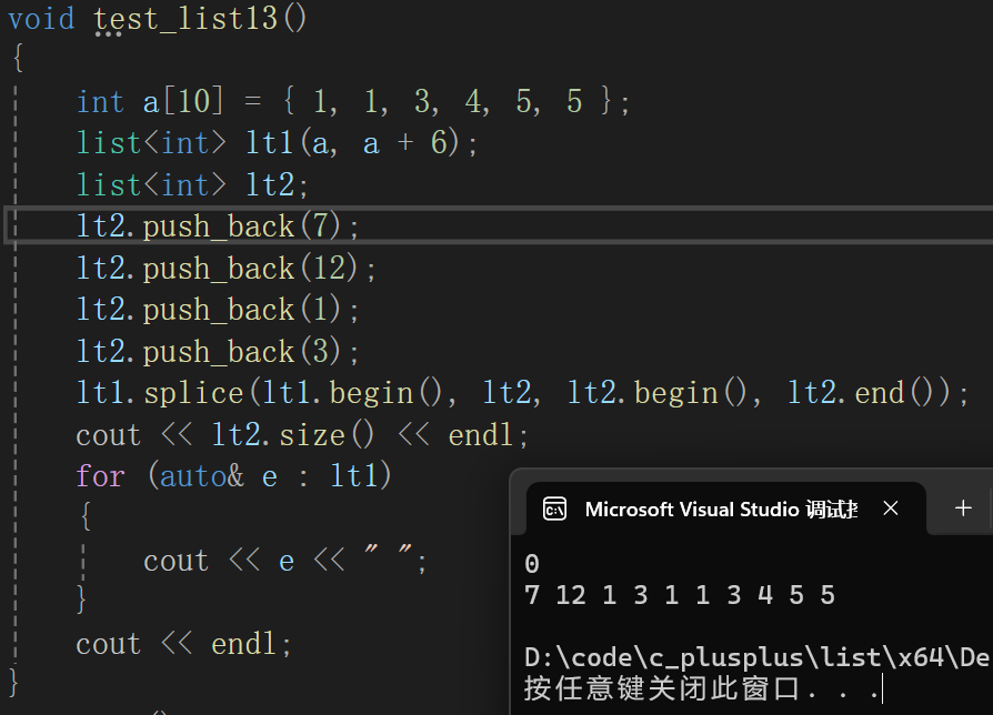 - splice:将list对象x链接到另一个list对象上,x中链接的节点就不在x上了