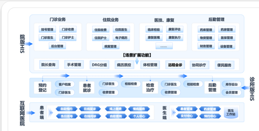 负责诊疗核心环节(患者管理、病历书写、诊断、医嘱/处方开具、住院预约);