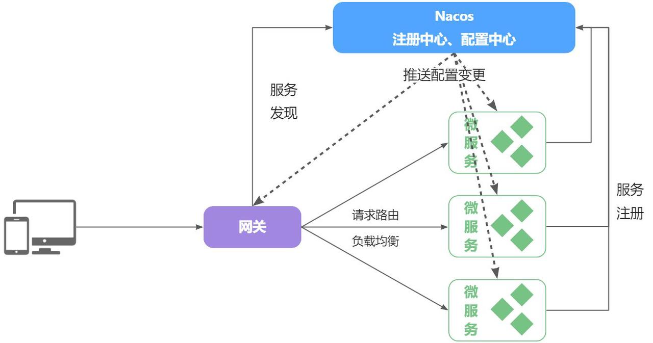 这些问题都可以通过统一的配置管理器服务解决。而Nacos不仅仅具备注册中心功能,也具备配置管理的功能: