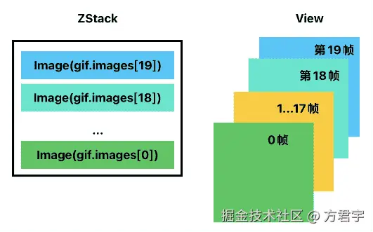 通过ZStack排列所有的图片帧,因为ZStack视图是从后往前,在ForEach循环时,也是从后往前的顺序遍历。