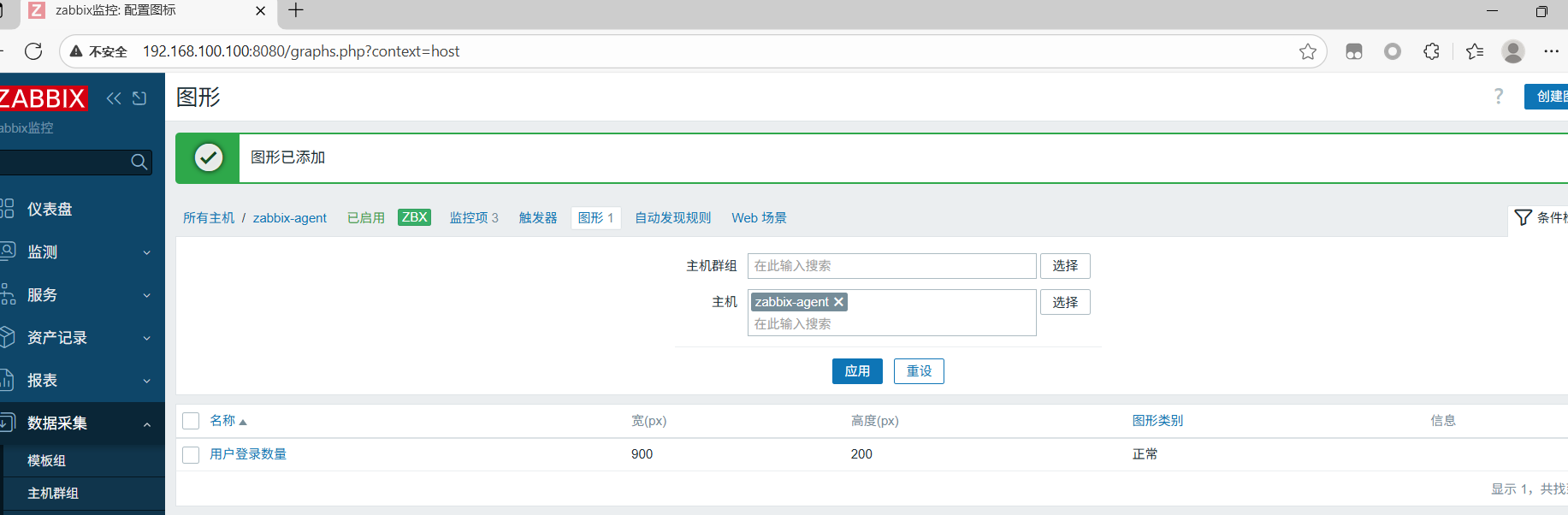 图形已经添加了,然后点击用户登录数量