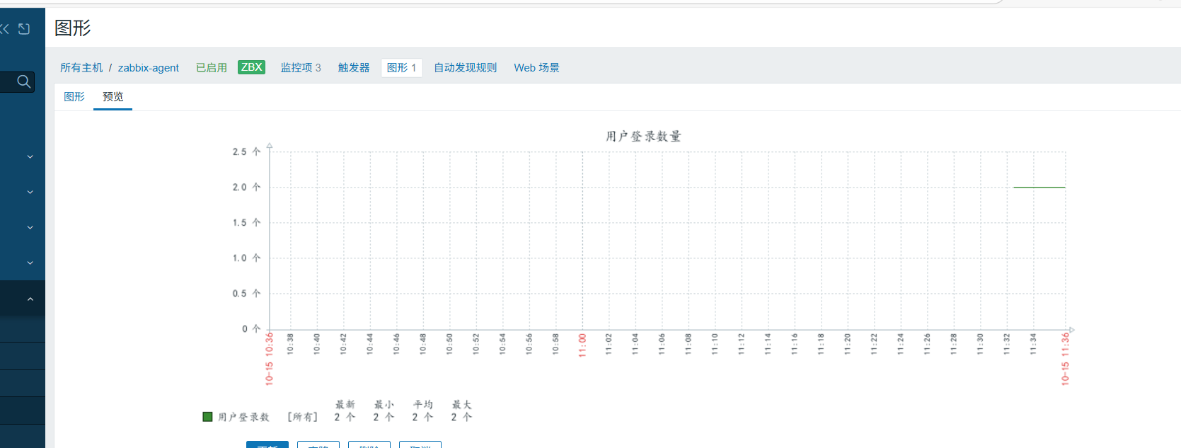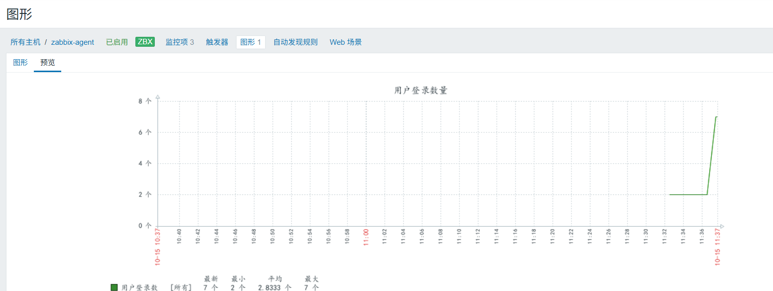 监控登录用户数量,虽然监控的自带键值有system.user.num,但是我们这次实用自定义键值实现