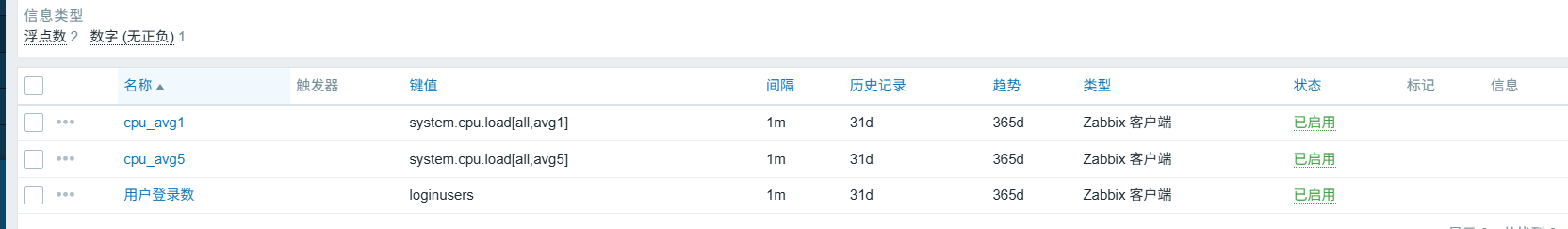 监控项 (item): 是从主机收集的数据信息,代表收集数据或监控的一个最小单位。 比如cpu1分钟内平均负载,内存空闲值,磁盘使用率等等都可以做为监控项。