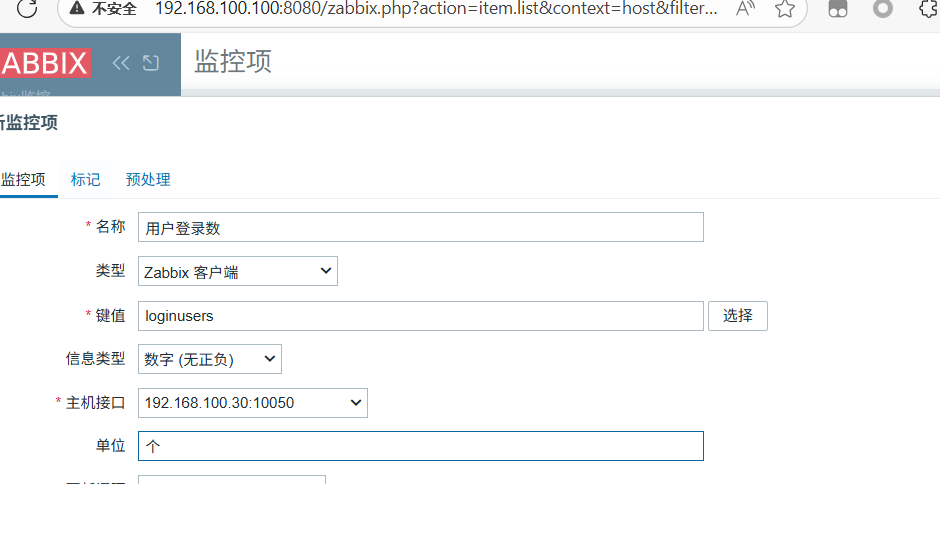 监控项选择用户登录数