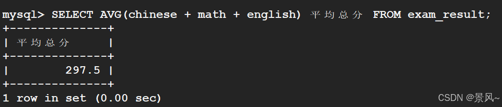 AVG([DISTINCT] expr) | 返回查询到的数据的平均值,不是数字没有意义 |