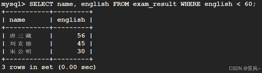 - 如果在查询数据时指定了where子句,那么在查询数据时会先根据where子句筛选出符合条件的记录,然后将符合条件的记录作为数据源来依次执行select语句。