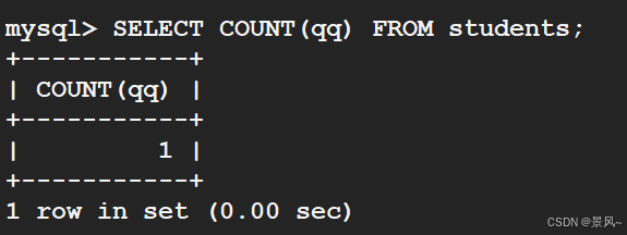 这种写法相当于在查询表中数据时,自行新增了一列列名为特定表达式的列,我们就是在用count函数统计该列中有多少个数据,等价于统计表中有多少条记录